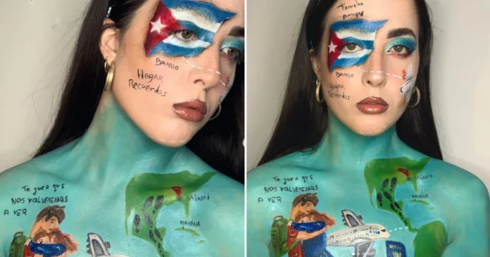 La chica, que se define en sus redes sociales como una “maquilladora en cuerpo y alma”, plasmó en su piel varias figuras en alusión a la fuga masiva de cubanos.